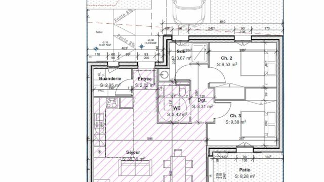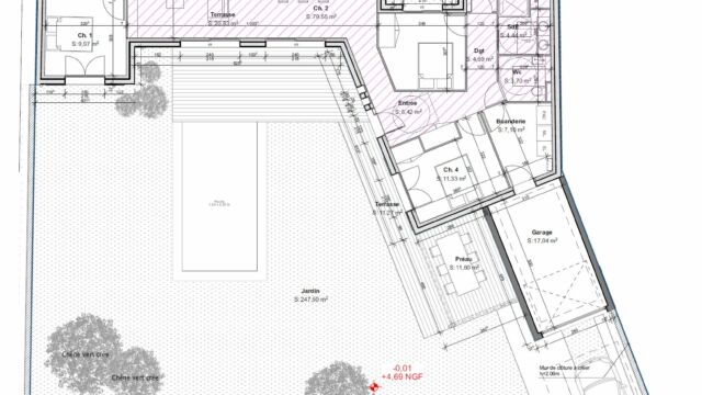 Lot 3 : Entrée, buanderie, garage, préau repas, pièce de vie, une suite parentale, 3 chambres enfants.