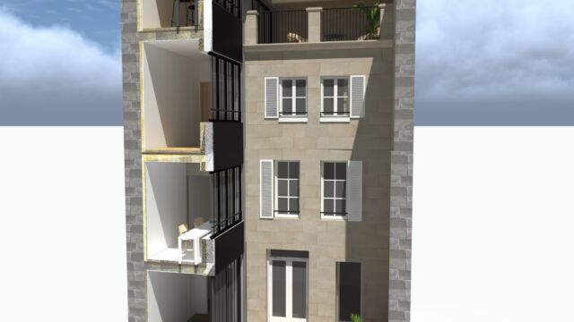 L’ensemble des niveaux sera restructuré et remis aux normes actuelles afin de proposer 5 logements, répartis