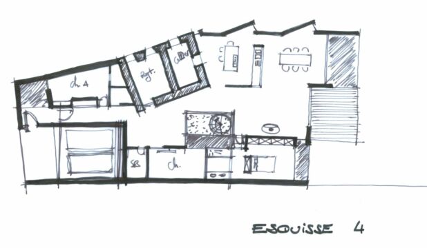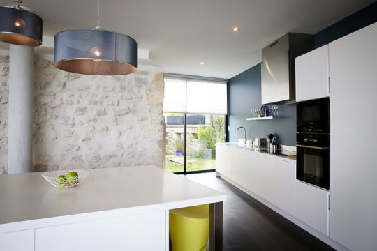 DESCRIPTION DU PROJET MAISON ANGOULINS SUR MER : Le projet, situé sur un terrain face à la mer à Angoulins, a la particularité de posséder un fortin classé et des murs Napoléoniens à conserver. L’architecture vient englober cet élément historique tout en préservant un maximum de vues vers la mer et les îles.