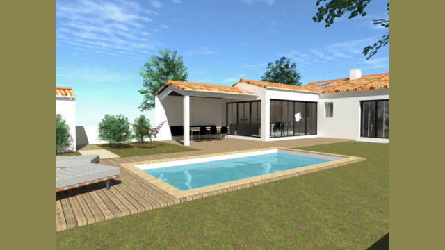 La maison est entièrement rénovée afin de tourner les pièces de vies vers le jardin, l’extension permet de créer une cuisine, prolongée d’un préau pour accueillir une terrasse couverte. Après cela, le jardin est agrémenté d’une piscine. Ensuite, la rampe d’accès au sous-sol ne trouvant plus son utilité sera supprimer afin de retrouver le niveau de la rue jusqu’au fond du jardin. Donc le projet se veut contemporain et rétais.
