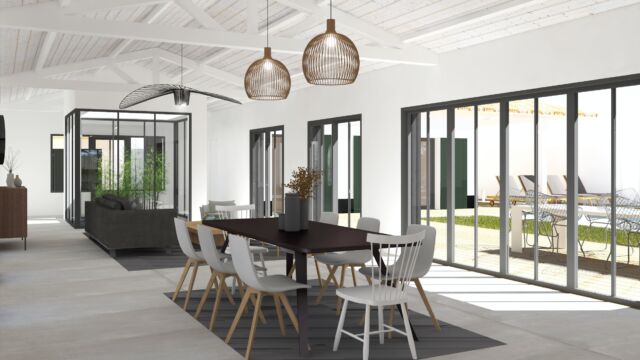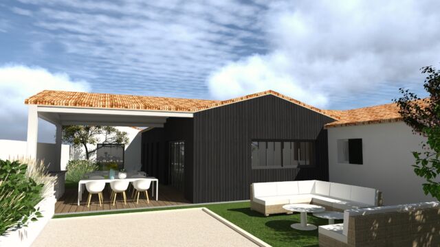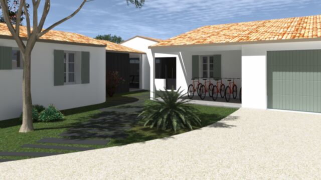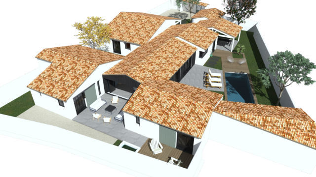 DESCRIPTION DU PROJET MAISON LE BOIS PLAGE 13 : Grâce au mariage entre l’esprit traditionnel de l’île de Ré et une écriture résolument contemporaine, cette maison s’intègre au cœur d’un quartier d’habitation existant. Elle dispose de plusieurs ailes aux fonctions différentes : aile parentale, aile enfants, aile amis etc… Chacune de ces ailes forme des espaces extérieurs adaptés à des usages variant au fil de la journée.