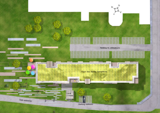 PROGRAMME : Notre proposition était de vouloir créer un bâtiment répondant à des critères très stricts, et ou malgré la recherche d’efficience, la qualité de vie des résidents et du personnel est prise en compte, avec la recherche de lumière naturel dans les communs, la réalisation d’espaces de rencontre intérieurs et extérieurs et d’un jardin paysager.