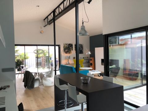 La volumétrie existante du hangar et ses nouvelles fonctions nécessaires à une maison d’habitation ont sculpté les espaces dans un esprit contemporain. L’architecte a souhaité maintenir dans ce projet le dialogue entre matériaux nobles et industriels. La distribution favorise la polyvalence des usages par l’emploi de parois coulissantes.
