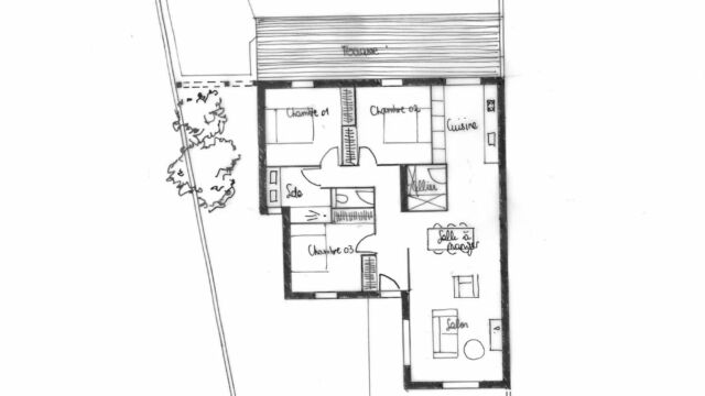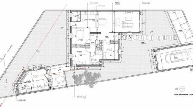 PROGRAMME : Garage, porche d’entrée, entrée, cellier, cuisine, salon-salle à manger, 3 chambres, une suite annexe, un préau de repas.