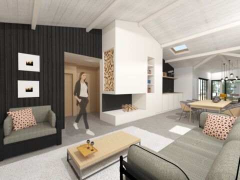 DESCRIPTION DU PROJET MAISON LE BOIS-PLAGE 8 : La maison actuellement sur sous-sol ne permet pas l’accès direct au jardin. L’idée du projet naît du souhait de réaliser un véritable espace extérieur à vivre.